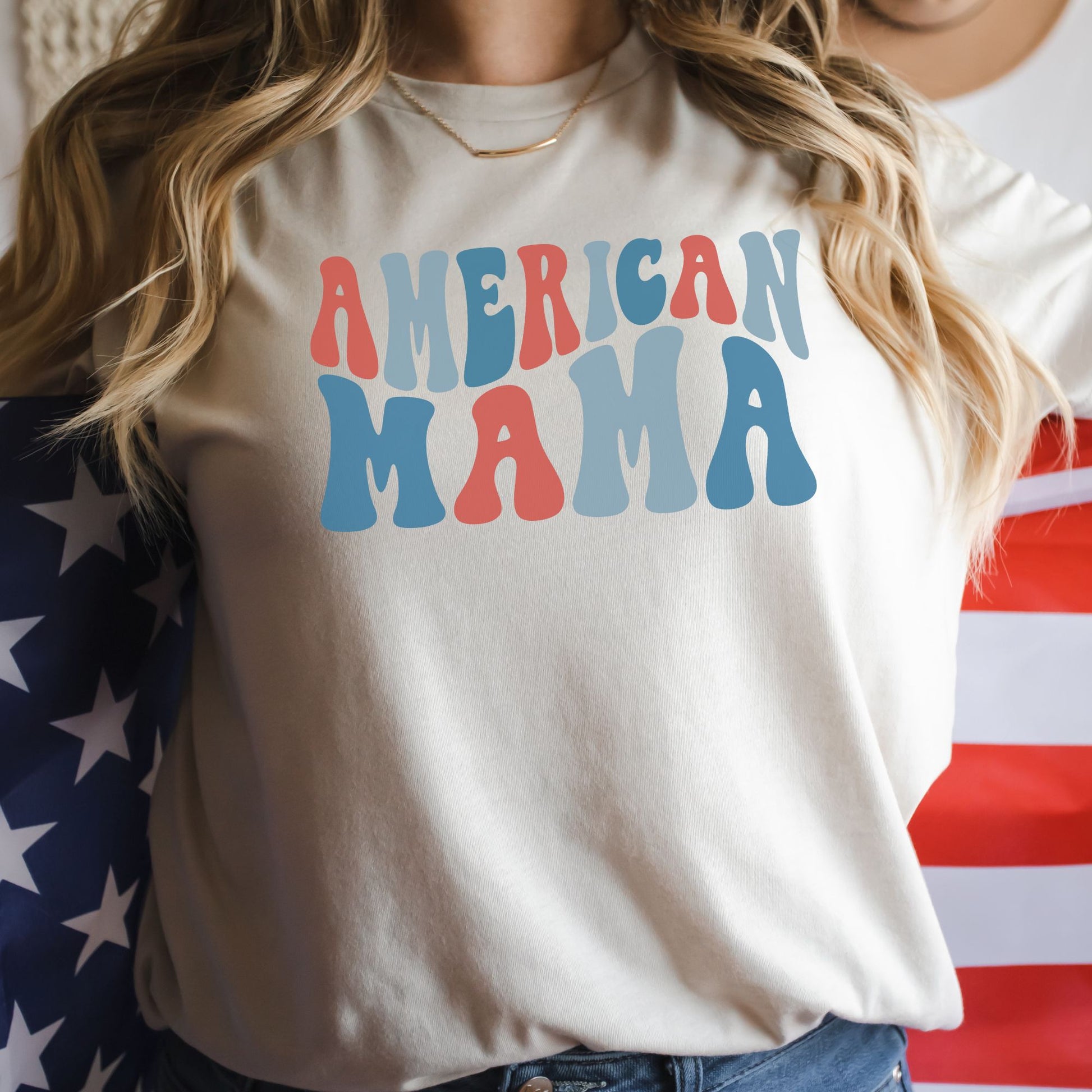 Get ready to rock your patriotic pride with this American Mama t-shirt! This tee is the perfect addition to any mom's wardrobe who wants to show off her love for her country and family. The design features bold lettering and a fun graphic that will make you the envy of all your friends.